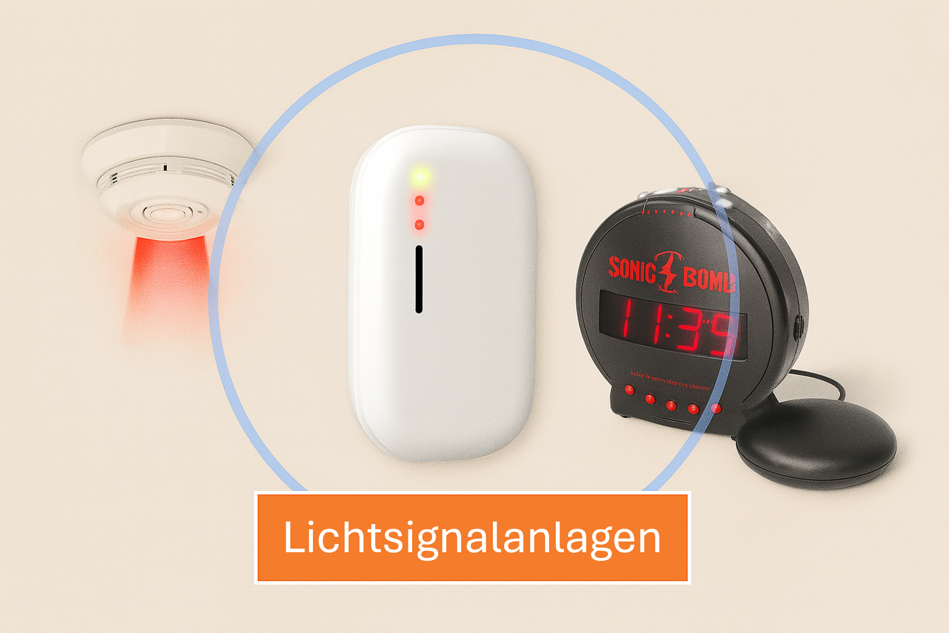 Rauchmelder für taube Menschen sind speziell entwickelte Rauchmelder, die ein starkes Blinklicht und/oder ein Vibrationskissen aktivieren, um den Nutzer im Falle eines Brandes zu warnen. Lichtsignalanlagen sind visuelle Signalgeber, die mit verschiedenen Lichtmustern und Farben arbeiten, um wichtige Informationen wie Türklingeln, Telefonanrufe oder Alarme zu übermitteln. Blitzlichtwecker mit Vibrationskissen sind spezielle Wecker, die mit einem Vibrationskissen ausgestattet sind, um Menschen mit Hörbehinderungen aufzuwecken. Das Blitzlichtsignal am Wecker kann in Kombination mit dem Vibrationskissen den Nutzer aufwecken. |